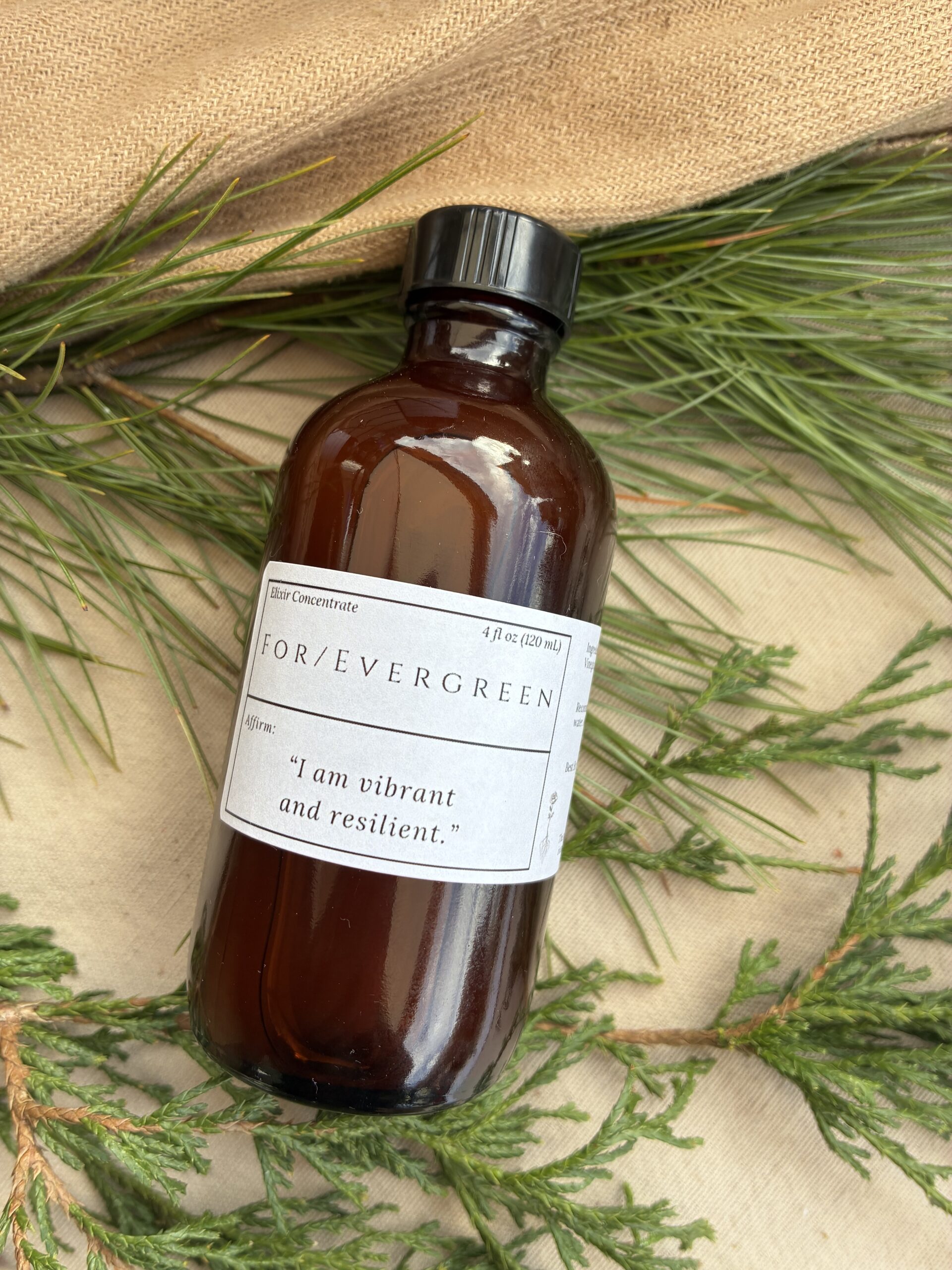 For/Evergreen is an oxymel based elixir concentrate. Evergreens are a symbol of rebirth and resilience. This concentrate is a tribute to the essence of evergreens for vibrancy and longevity even in the darkest times.